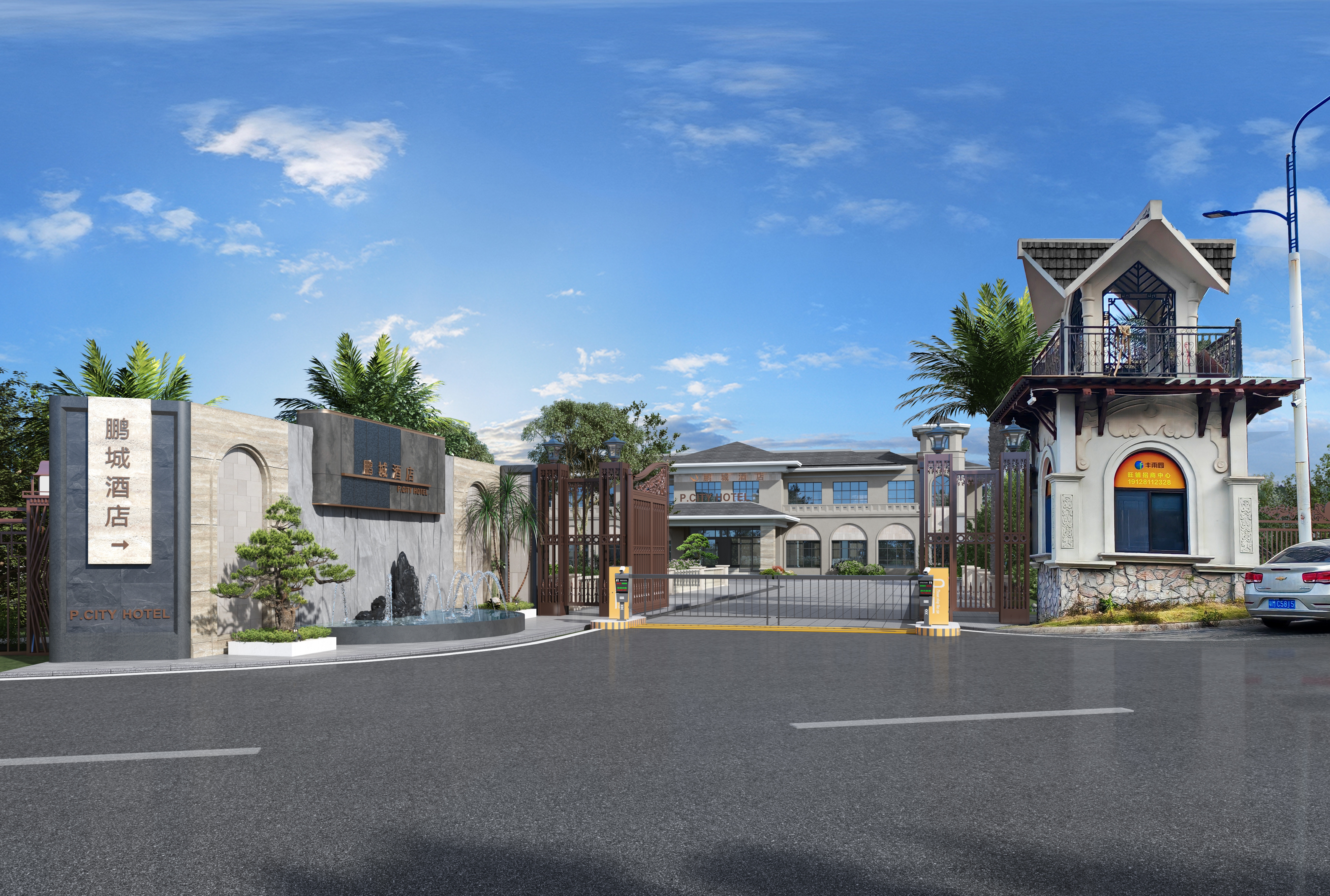 鹏城酒店(梅州店),隶属于深圳市鹏城酒店集团,位于广东省梅州市梅江区客天下圣山东路,占地面积约16800㎡,建筑面积约5000㎡,规划设计有50间客房、餐饮、棋牌、观景湖音乐喷泉、露营吧、扫码充电桩、免费停车场等,按照星级标准打造成极具客家风情的高端连锁品牌酒店。